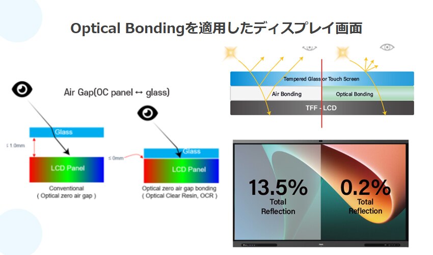 液体接着剤で結合してAir Gapを無くし、一般製品に比べて対比率と